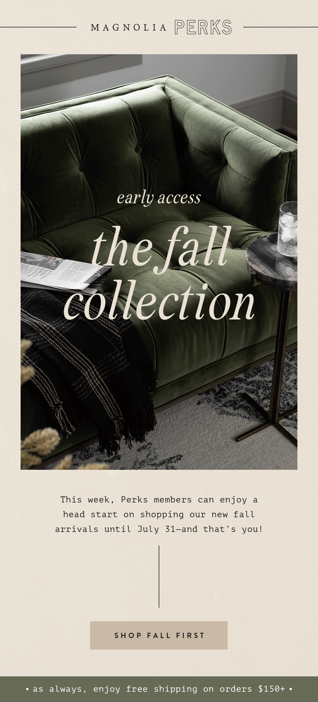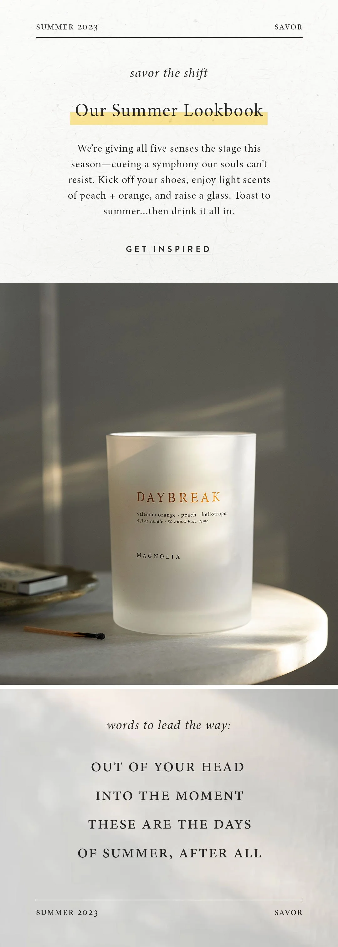 Every season, the creative team at Magnolia crafts the story they want to tell through their photography, voice, and design. The marketing campaigns are one of the ways those things come together in our emails, social posts and stories, web assets and in-store signage.
